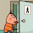 坏小子看见一个人上厕所,他把厕纸拿走了,想捉弄一下里面的人。